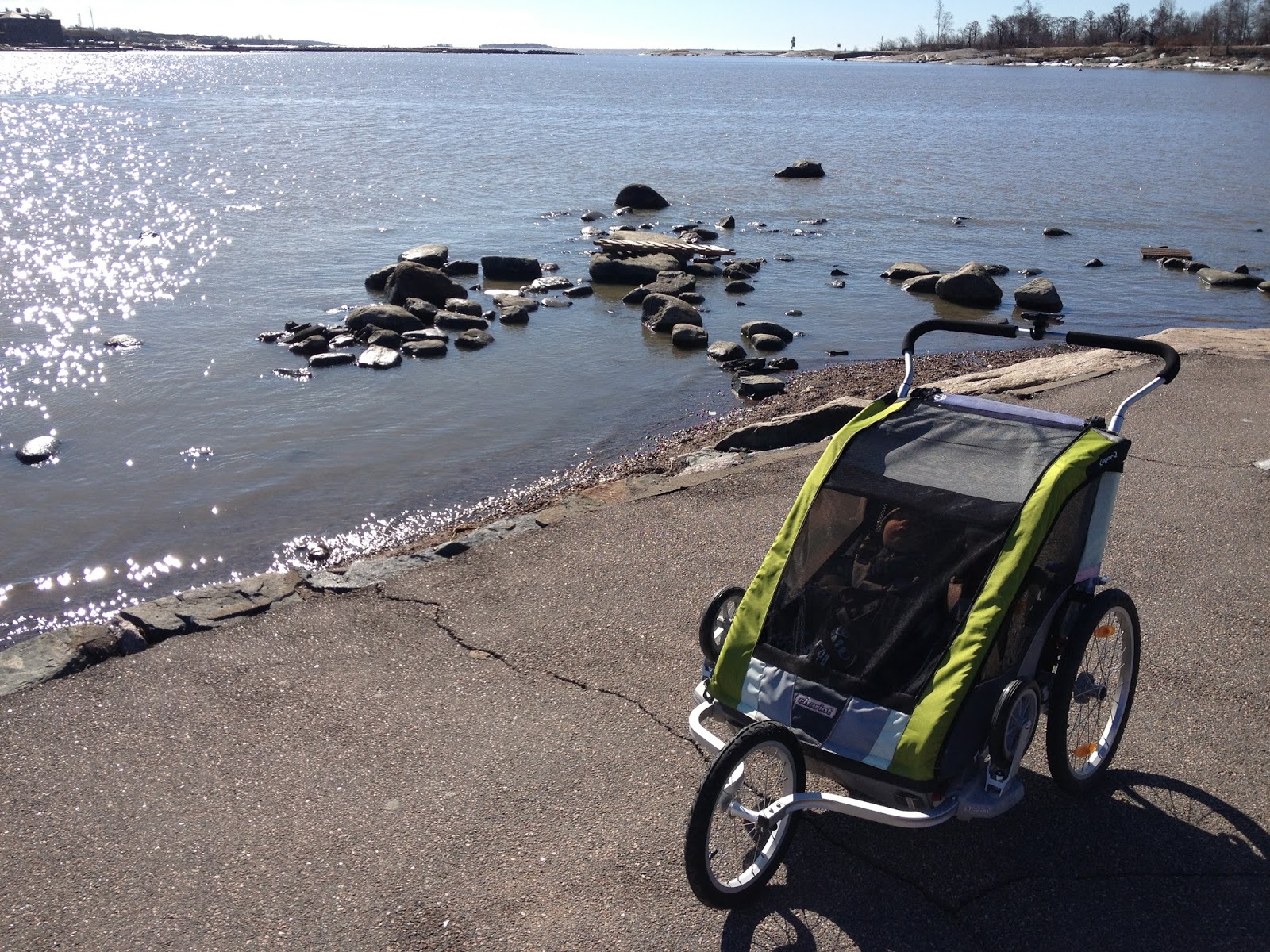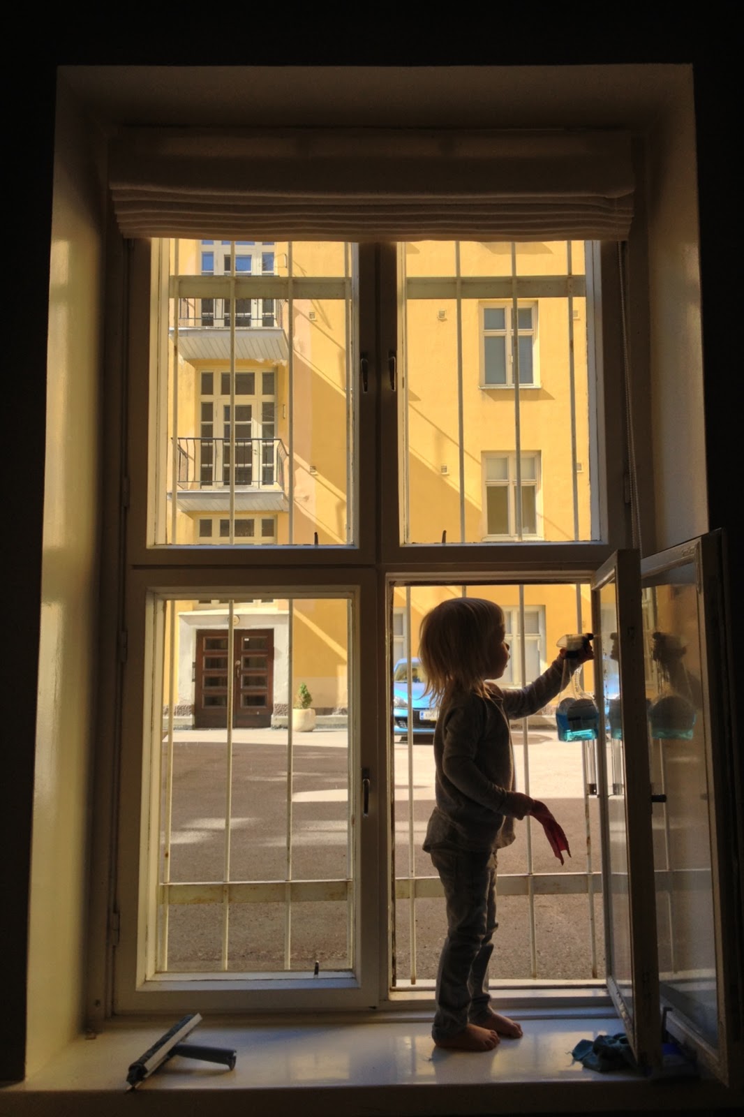 ”Alussa energiaa riitti. Pesin kodin ikkunat, käytiin retkillä ja juoksulenkeillä päiväunien aikana. Jossain vaiheessa sitä huomasi, että päivät kului nopeasti ihan vain arkisissa hommissa: ruoanlaitossa ja ruokailussa, siivoilussa ja puistoillessa. Yksi lähetetty sähköposti olikin hyvä ja riittävä saldo yhden päivän saavutuksiksi. Just ennen meidän yhteistä kesälomaa, kesäkuussa, alkoi tylsistyttää. Tuntui, että pyöritään samaa ympyrää koko ajan, aamutoimista puistoon, päiväunille ja välipalalle. En tiedä kuinka kauan olisin sitä jaksanut, ainakaan ilman seuraa. Vaikka jotkut naamat puistossa tutuiksi tulivatkin, en erityisesti tutustunut muihin lasten kanssa kotona oleviin vanhempiin. Sen yhden kaverinkaan luokse en puheista huolimatta ikinä saanut lähdettyä, se olikin se ainoa asia mikä jäi tekemättä. Niin ja sen keittiön kaapin oven korjaus”
