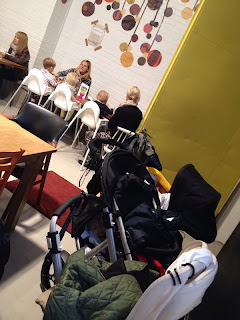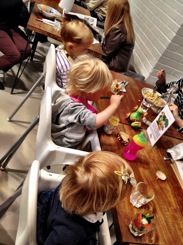 Sitten treffailtiin muita ihania mamoja ja lapsia, lapset leikki kiltisti Mokon leikkipaikassa ja me jopa saimme syödyksi täpötäydessä kahvilassa kolmien vaunujen ja viiden lapsen kanssa. Vauvat nukkui ja taaperot söi nätisti rivissä. Siitä paukkasimme ruokakaupan kautta kotiin, jossa Ykkönen nukahti päiväunilleen alle kymmenessä minuutissa. Nostin sen tasan kaksi kertaa takaisin sänkyyn ja se oli siinä. Myös Kakkonen nukahti nätisti ja nukkui pari tuntia. Sain kodin siistiksi, itseni pelikuntoon ja ruoat tehtyä. Iltapäivällä ehdittiin siis lähinnä leikkiä ja hassutella, sekä seurustella erään ihanan kummitädin kanssa. Kun muut vieraat tuli paikalle, oli ruoka valmista ja emäntä onnellinen. Ja vaikka itse sanonkin (sanon, koska vieraatkin niin sanoi), kaikki ruoka oli erinomaisen hyvää ja uudet reseptit oikein maukkaita.